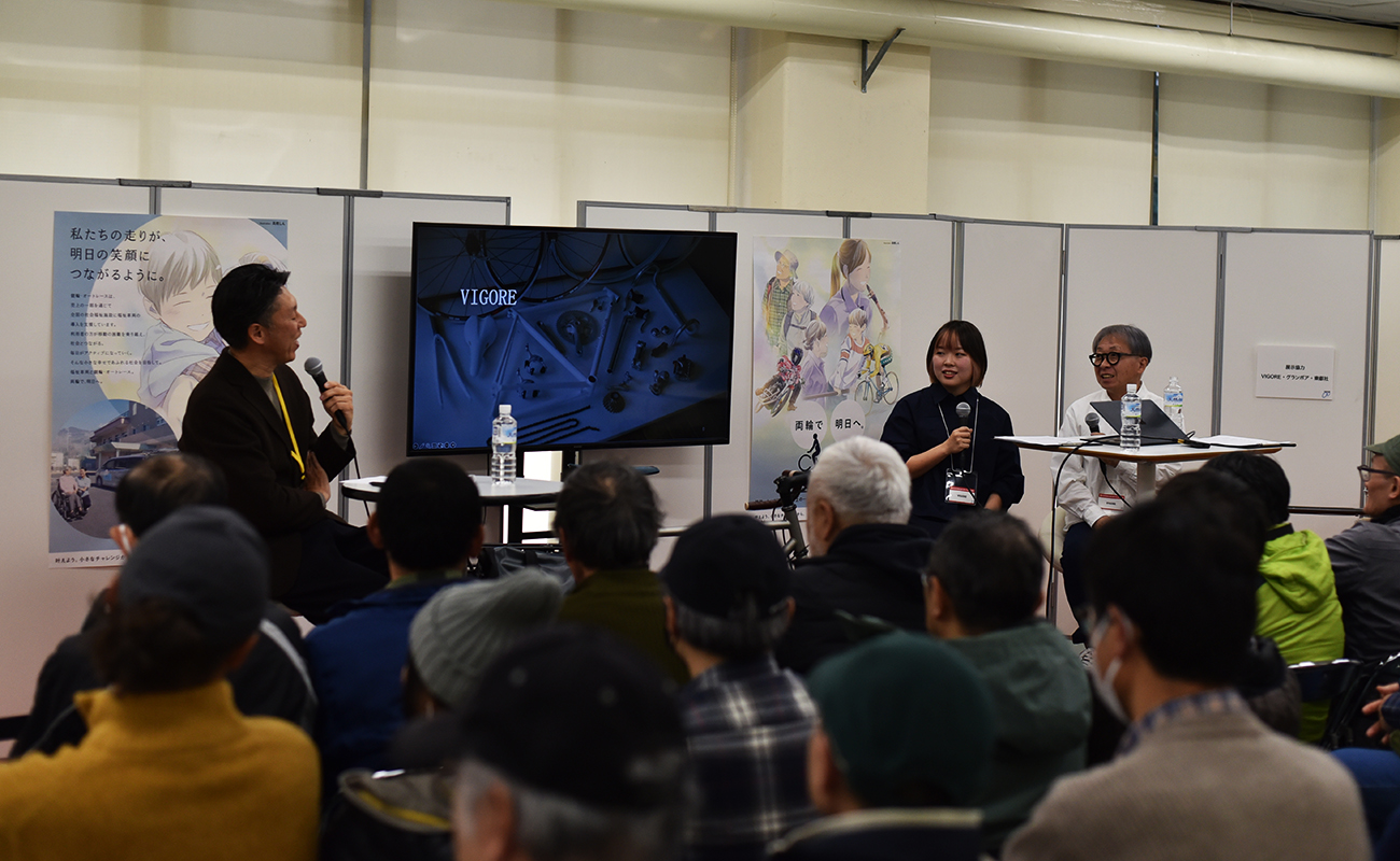 前半では、ハンドメイドの試作開発を基盤に、完全ハンドメイドのフレームと、少量生産のプロダクト製品、その両輪を数十年にわたり続けてきた背景や意味、そしてビルダーズブランドとしての未来についてお話ししました。